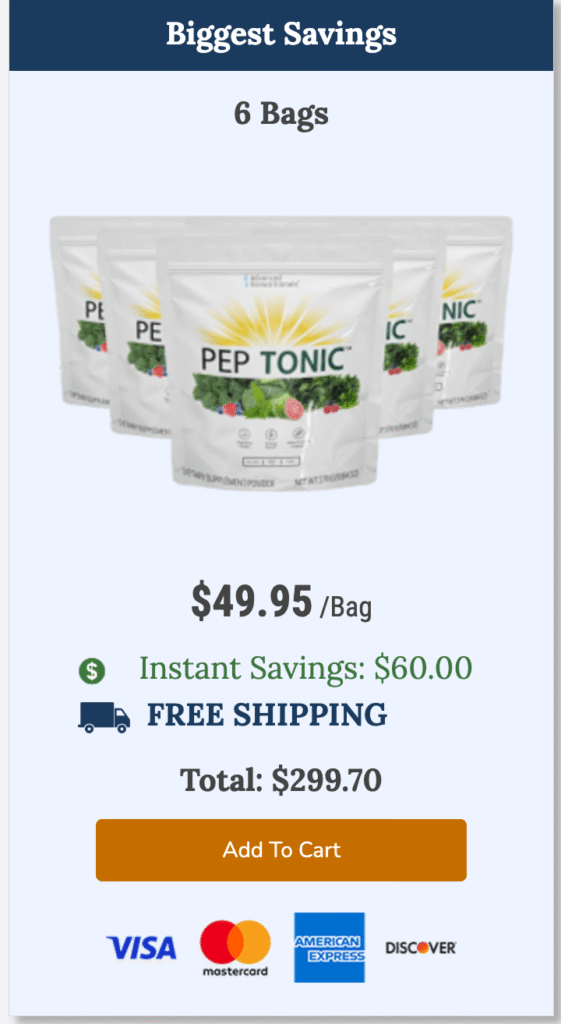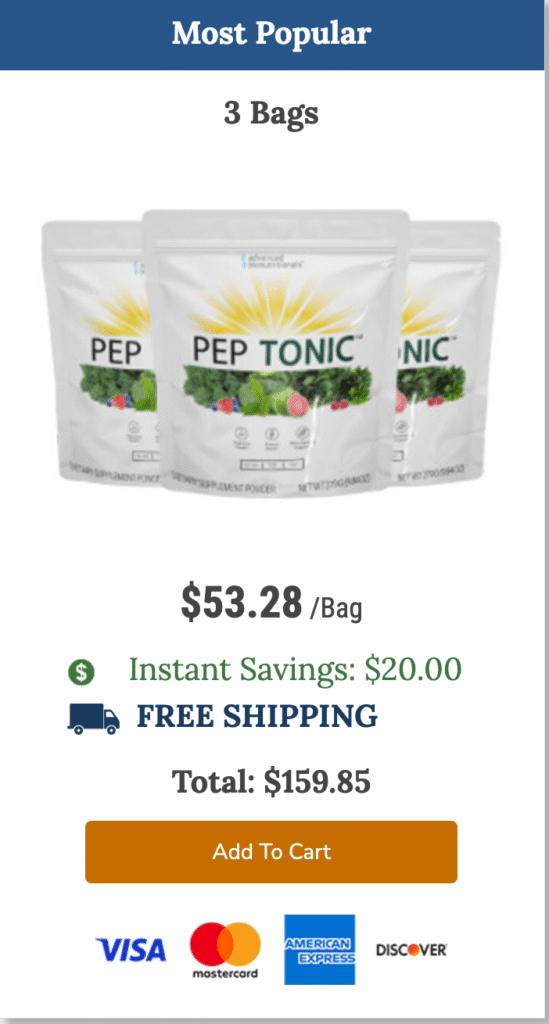 At this moment you can order PEP TONIC supplement for instant savings $60.00 + FREE  SHIPPING this is a limited-time offer and it won’t be available for long..