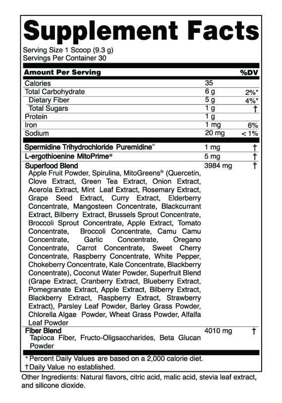 A powerful blend of nutrients, antioxidants, superfoods, and fiber designed to support energy, cellular health, digestion, and overall vitality